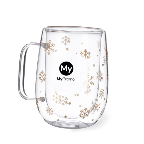 400 ml dubbelwandige thermische mok. Met origineel sneeuwvlokontwerp en speciaal druk oppervlakte aan de voorkant. Gemaakt van borosilicaatglas, dat uitzonderlijk sterk en duurzaam is, waardoor de mok langer meegaat en talloze keren kan worden hergebruikt. Gepresenteerd in een zwarte designdoos met een gouden illustratie.