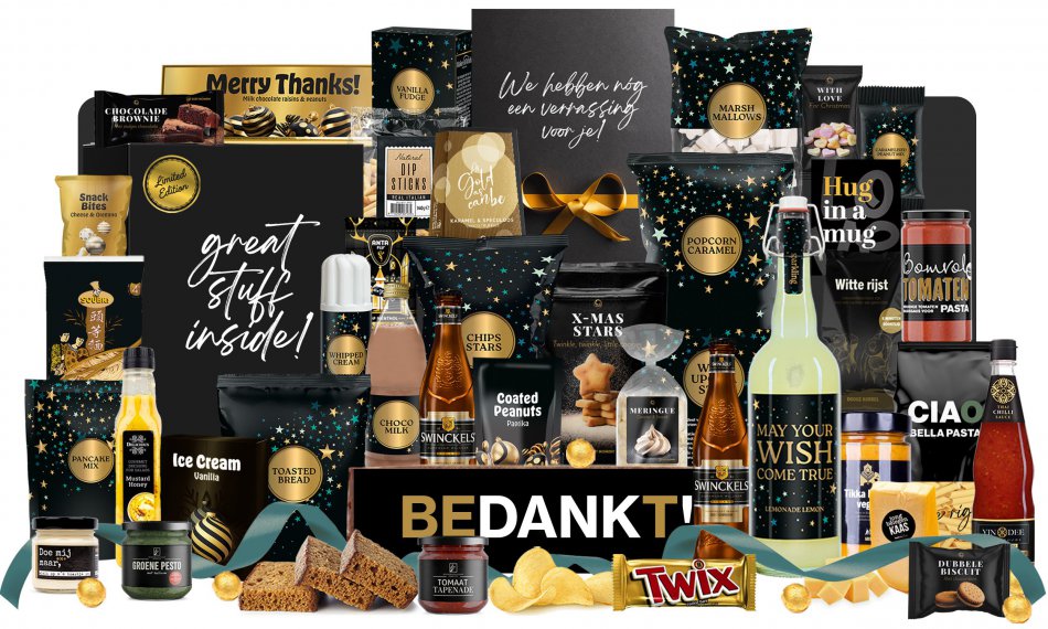 Dit Pakket Is Zó Goed Gevuld, Het Voelt Als Meerdere Cadeaus In één. Van Hartige Borrelhapjes En Zoete Lekkernijen Tot Complete Ingrediënten Voor Een Gezellige Maaltijd, Alles Zit Erin Voor Een Heerlijke Feestperiode Thuis. Twee Themaboxen Zorgen Voor Structuur én Verrassing: Een Borrelbox Vol Kaas, Toast, Aioli, Pesto En Meer. een Zoetbox Met Koekjes, Truffels, Fudge En Thee. Demake-a-wish producten Maken Het Pakket Helemaal Af.en Alsof Dat Nog Niet Genoeg Is, Bevat Dit Pakket Ook Een Extra Verrassing: 8 Inspirerende Boeken Om Heerlijk In Weg Te Duiken. Een Pakket Dat Smaakt, Raakt En Blijft Verrassen.
