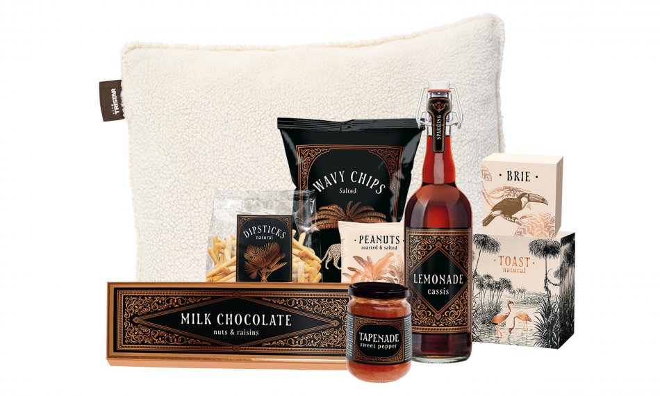 een Zacht Warmtekussen, Een Feestelijk Drankje En Een Smaakvolle Selectie Van Borrelhapjes Maken Dit Pakket Tot Een Moment Van Pure Ontspanning. Denk Aan Brie Met Toast, Tapenade Met Dipsticks, Een Handje Pinda's En Een Flinke Reep Chocola Toe. Perfect Voor Een Rustige Avond Vol Comfort En Kleine Genietmomenten.