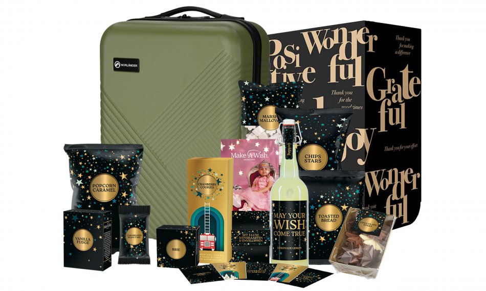 deze Stijlvolle Trolley Zit Vol Lekkers En Licht - Van Stervormige Snacks Tot Een Luxe Wenskaartenset Om Door Te Geven. Met Elke Hap En Slok Proef Je Niet Alleen Smaak, Maar Ook Aandacht. Een Hartverwarmend Kerstpakket Dat Feestelijk Verrast Γ©n Iets Moois Uitstraalt.