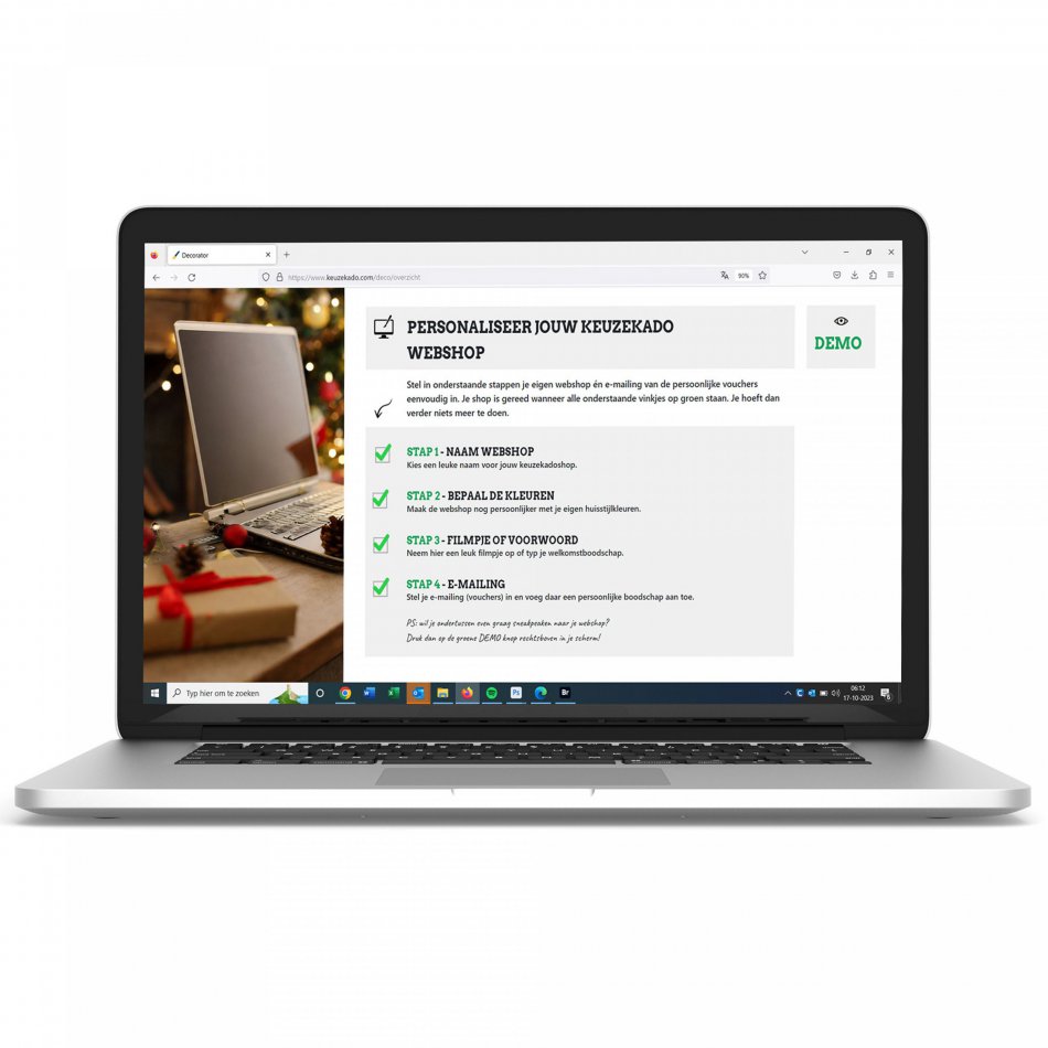Na het plaatsen van jouw bestelling ontvang je binnen 30 minuten een mail met een link naar de keuzekado shopdecorator om jouw eigen shopnaam te kiezen, in te stellen en te personaliseren met jouw voorwoord of een leuk filmpje. Ook kun je hier de e-mailadressen van de ontvangers uploaden en jouw e-mailing instellen en personaliseren. Je kunt de instellingen invoeren en aanpassen tot het moment je de mailing wilt laten verzenden.Je ontvangt automatische reminders als je de shop nog niet volledig hebt ingesteld.
