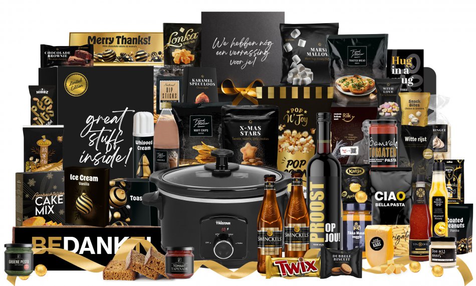 Feestelijk Slowcooker Verwenpakket - Voor De Smaakmaker In Huis. Met De Tristar Slowcooker Zet Je Zonder Stress De Lekkerste Gerechten Op Tafel. En Dat Is Nog Maar Het Begin. Dit Royale Pakket Zit Bomvol Hartige Borrelfavorieten, Verrassende Dips, Zachte Kazen En Een Zoetbox Waar Je U Tegen Zegt. Van Pastasaus Tot Pinda's, Van Chocomelk Tot Choco Fudge, En Van Popcorn Tot Proostmomenten Met Wijn En Swinckels. inclusief Een Digitale Verrassing: Download Tot 8 Topboeken Als E-book Of Luisterboek - Ideaal Voor Tijdens Het Wachten Op Die Langzaam Gegaarde Maaltijd.
