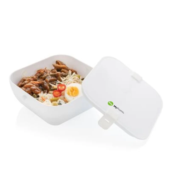 Deze stijlvolle en stevige lunchbox past perfect in een gezonde levensstijl. Door zijn vierkante vorm ideaal voor heerlijke salades, maar ook voor het opwarmen van pasta of gewoon voor je sandwiches. Gemaakt van PP, vaatwasser- en magnetronbestendig. Siliconen grip sluiting. Inhoud 2,4 liter.