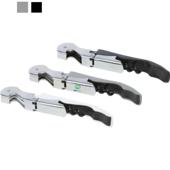 Roestvrijstalen sommeliermes met een gekleurde behuizing, met een kurkentrekker, foliesnijder en flesopener. Door de tweestapsconstructie is het gemakkelijk om de kurk uit de fles te trekken. Roestvrijstaal, Staal.