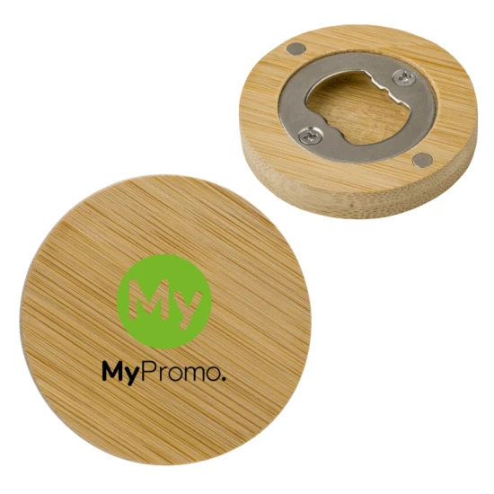 Bamboe magneet met flesopener. De flesopener bevindt zich aan de binnenkant en zal het oppervlak niet beschadigen.