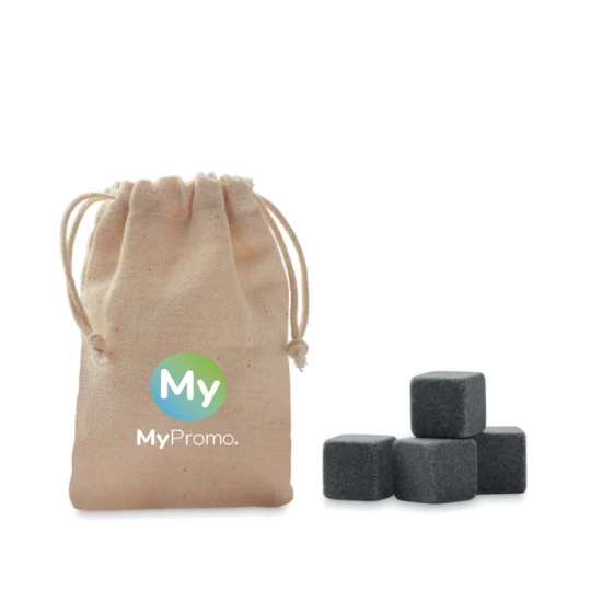 Set van 4 herbruikbare ijsblokjes van steen in een handig katoenen opbergzakje