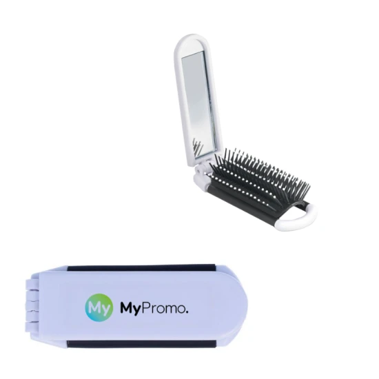 Uitklapbare haarborstel met spiegel.
