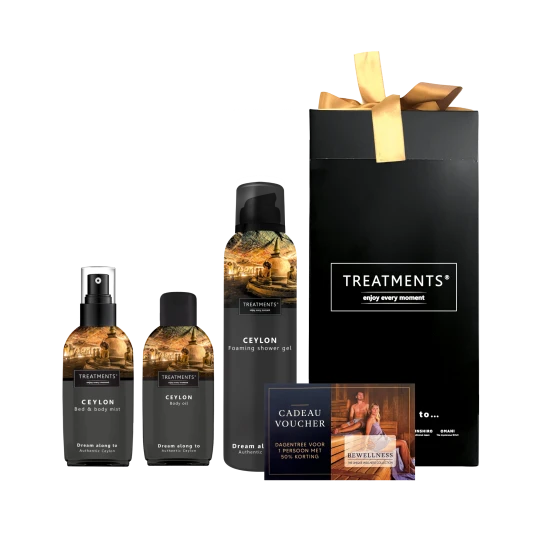 Wat een perfect cadeau! De Giftbox Small van Treatments® is het ideale geschenk voor wie van de kleine, speciale momenten houdt. Geniet van een luxe geurbeleving die je de hele dag omhult, met een verfrissende Foaming Shower Gel, voedende Body Oil en kalmerende Bed & Body Mist. Elk product zorgt voor een moment van pure verwennerij en ontspanning. Maar dat is nog niet alles! Bij deze giftbox ontvangt u ook een kortingsvoucher van 50% voor een dagje wellness, zodat u nog verder kunt genieten van ultieme rust en luxe. Een ideaal cadeau voor elke gelegenheid, of gewoon om uzelf of een ander in de watten te leggen. Maak van elke dag een luxe-ervaring!