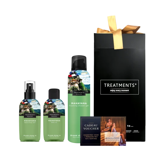 Wat een perfect cadeau! De Giftbox Small van Treatments® is het ideale geschenk voor wie van de kleine, speciale momenten houdt. Geniet van een luxe geurbeleving die je de hele dag omhult, met een verfrissende Foaming Shower Gel, voedende Body Oil en kalmerende Bed & Body Mist. Elk product zorgt voor een moment van pure verwennerij en ontspanning. Maar dat is nog niet alles! Bij deze giftbox ontvangt u ook een kortingsvoucher van 50% voor een dagje wellness, zodat u nog verder kunt genieten van ultieme rust en luxe. Een ideaal cadeau voor elke gelegenheid, of gewoon om uzelf of een ander in de watten te leggen. Maak van elke dag een luxe-ervaring!