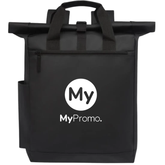 Waterdichte rugzak met gewatteerd laptopvak, gewatteerde verstelbare schouderbanden, hoofdvak met ritssluiting, rolsluiting en 2 handgrepen. Tapaulin.