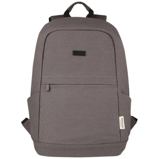 De Joey antidiefstalrugzak is gemaakt van zeer duurzame en sterke materialen, gerecycled GRS-canvas en GRS RPET-voering en heeft een speciale tablethoes en een gewatteerd laptopvak van 15,6 inch. De rugzak heeft ook een mesh-vak en handige vakken aan de binnenkant om de inhoud goed georganiseerd te houden, twee vakken voor een waterfles aan de zijkant, een voorvak met rits en een verborgen vak aan de achterkant voor gemakkelijke en veilige toegang onderweg. Het decoratieve metalen plaatje kan een logo laten opvallen door de subtiele en matte afwerking. 80% GRS gecertificeerd gerecycled katoen en 20% Katoen, 330 g/m2.