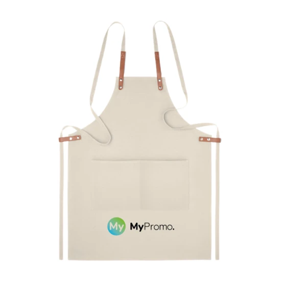 Verstelbaar keukenschort van 340 gr/m² organisch katoen, met 2 voorzakken.
