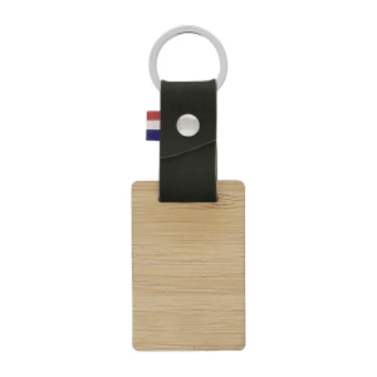 Bamboe plantaardige sleutelhanger, bestaat voor 69% uit plantaardig materiaal en gemaakt in Frankrijk. Deze milieuvriendelijke sleutelhanger is versierd met een kleine driekleurige vlag. Ideaal voor wie stijl en duurzaamheid wil combineren.