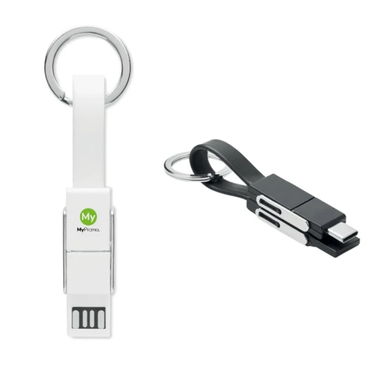 Sleutelhanger | Kunststof en metaal | Met 4-in-1-oplaadkabel | Type-C, Type-A en Micro USB