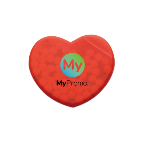 Een Hartvormige Pepermuntdispenser. Pp Kunststof. Bevat 8 Gram Pepermuntjes.