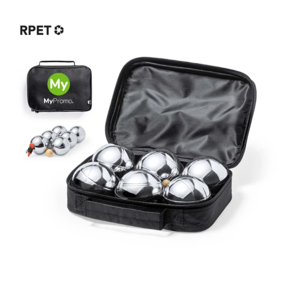 Geniet van een klassiek spel met een duurzame twist met deze hoogwaardige jeu-de-bouleset, ideaal voor buitenactiviteiten, bedrijfsuitjes of teambuilding. De set bestaat uit zes stevige metalen ballen en een houten but, perfect voor een professionele speelervaring. Een handig meetkoord is inbegrepen voor nauwkeurige puntentelling. Alles past in een stijlvolle draagtas van rPET met ritssluiting en handvat, gemaakt van gerecyclede plastic flessen. Of je nu een dagje uit plant of op zoek bent naar een bedrukt relatiegeschenk, deze jeu-de-bouleset combineert plezier, functionaliteit en milieuvriendelijk design in één.