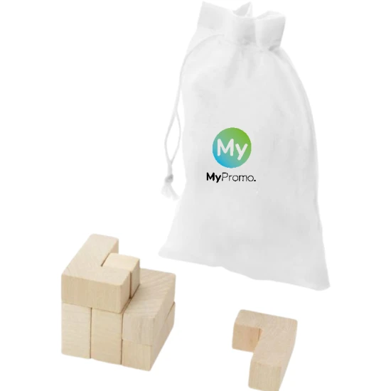 Ben jij op zoek naar een uitdagend relatiegeschenk dat jouw connecties verrast? Dan is de Hersenkraker absoluut iets voor jou! Deze houten hersenkraker is een uitstekende manier om de geest te prikkelen en nieuwe uitdagingen aan te gaan. Vergeet de traditionele relatiegeschenken zoals pennen en sleutelhangers, onze houten vierkantjes zorgen voor een unieke en blijvende indruk. Het katoenen zakje is bedrukt met jouw logo of ontwerp en maakt de Hersenkraker compleet. Kies voor dit duurzame en milieuvriendelijke promotieartikel en laat jouw connecties zien dat jij geeft om hun intellectuele uitdagingen.