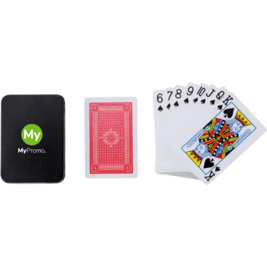 Metalen blik met speelkaarten.