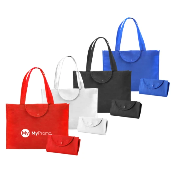 Deze handige opvouwbare tas is perfect om altijd bij de hand te hebben. Gemaakt van duurzaam non-woven materiaal, waardoor hij bestand is tegen een gewicht tot wel 9 kg. Met een klepsluiting en verstevigde inzetstukken met biezen en gestikte afwerking, zal deze tas je favoriete boodschappentas worden. Dankzij de middellange hengsels van 56 cm kun je hem gemakkelijk over je schouder dragen. Deze tas is bovendien verkrijgbaar in een gevarieerd aanbod van heldere tinten, dus er is altijd wel een kleur die bij jouw stijl past. Een geweldig relatiegeschenk of promotieartikel, waar jouw klanten of gasten echt iets aan hebben!