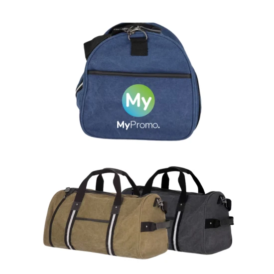 Stilvolle Reisetasche aus recyceltem Baumwoll-Canvas. Verfügt über 100% recycelte reflektierende Gurte, luxuriöse Reißverschlüsse und Zipper sowie ein Innenfutter aus 100% recyceltem Polyester. Enthält einen seitlichen Haltegriff, einen verstellbaren und abnehmbaren Schultergurt, 1 Seitentasche, 2 Fronttaschen und 3 Innentaschen, eine mit Reißverschluss.