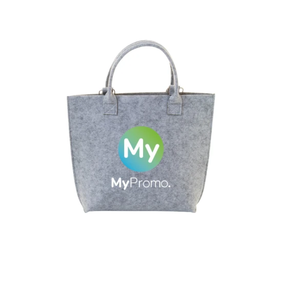 Custom made RPET vilten dames crossbody tas met full colour bedrukt voorvak. Met korte hengsels, afneembare schouderriem en kenmerkend RPET-label. Prijs is inclusief sublimatiebedrukking. MOQ: 50 stuks.