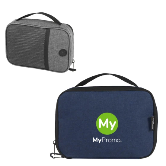De Ross GRS gerecyclede tech opberghoes is ideaal voor mensen die constant onderweg zijn en kan powerbanks, oplaadkabels of andere elektronische accessoires georganiseerd houden. Met meerdere zakken, elastische lussen en een doorvoerpatch voor het opbergen van een powerbank in de hoes tijdens het opladen van een telefoon. Het heeft ook een plastic karabijnhaak voor bevestiging aan een andere tas. Capaciteit: 1 liter. 300D van GRS certified recycled polyester.