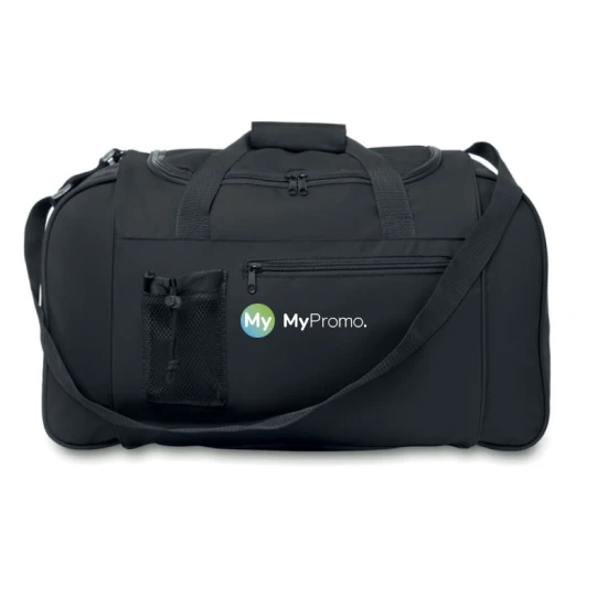 Grote sport- of reistas van 600D polyester met voorvak en een verstelbare en afneembare schouderriem.
