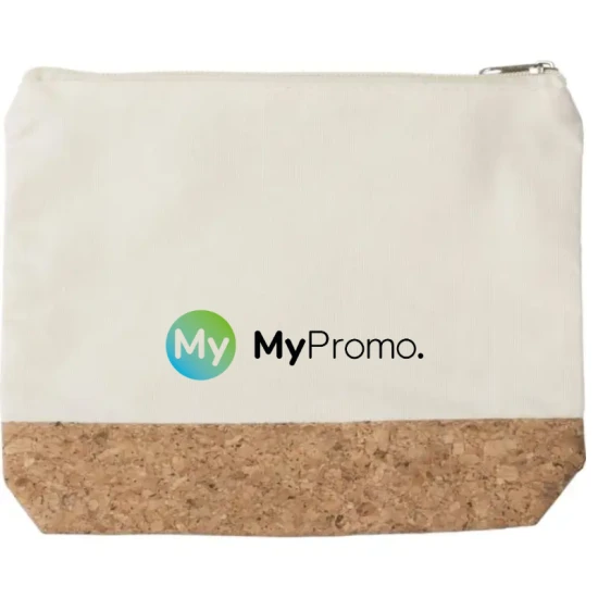 Katoenen (220 gr/m2) make-uptasje met kurkdetails en ritssluiting. Eén groot compartiment.