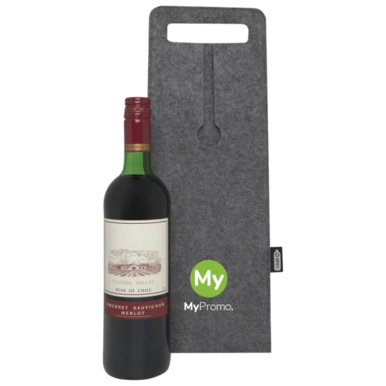 Wijntas gemaakt van zacht en duurzaam GRS gecertificeerd gerecycled vilt, met een duidelijke vorm en handgrepen voor gemakkelijk dragen. Capaciteit: 75 cl. GRS certified recycled polyester.