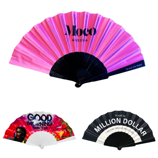 Waaier | Plastic | Groot logo + Extra logo op het handvat | 23x42cm wanneer geopend