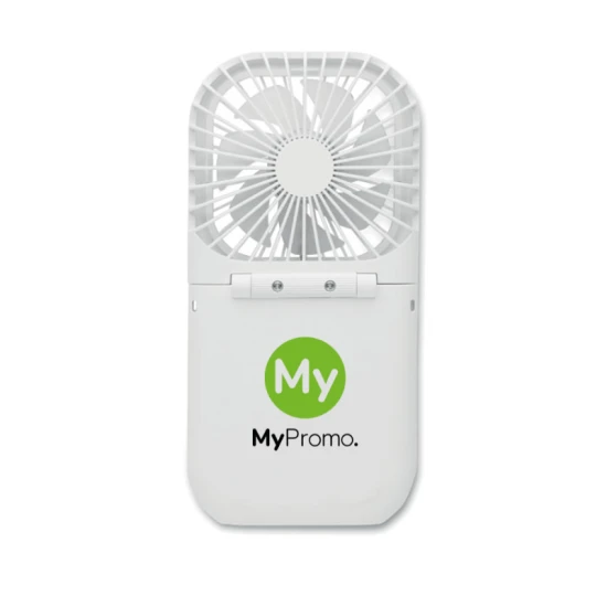 Draagbare opvouwbare ventilator met verstelbare band. 3 snelheidsinstellingen. Kan ook als bureau ventilator worden gebruikt wanneer opgevouwen. Inclusief powerbank van 3000 mAh.