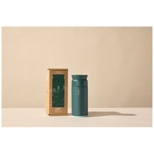 De Ocean Bottle-thermosfles van 350 ml is een geweldige keuze voor warme dranken onderweg. De fles bevat gerecycled roestvrijstaal en gerecycled plastic uit de oceaan. Eén thermosfles bestaat uit 1000 plastic flessen en verbetert het leefklimaat in kustgemeenschappen. De fles is voorzien van een NFC Smart Chip om meer plastic te verzamelen bij elke vulling. De innovatieve 360 dop laat aroma's circuleren en de dubbele thermische isolatie van gerecycled roestvrijstaal houdt dranken tot zes uur lang warm. Recycled stainless steel, 50% PET Plastic en 25% Gerecylced PET plastic en 25% Silicone Plastic.