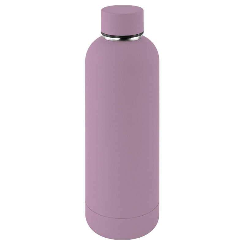 Dubbelwandige RVS thermosfles van 500 ml met zachte rubberafwerking. De bijpassende schroefdop beschermt je drankje—handig voor woon-werk, sporten en dagelijks gebruik.