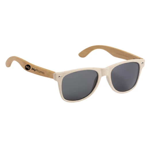 Wil jij een zonnebril die niet alleen stijlvol is, maar ook nog eens duurzaam en milieuvriendelijk? Kies dan voor onze Bamboe zonnebril! Het montuur is gemaakt van bamboevezel en de armen zijn van bamboe. Niet alleen ziet deze bril er natuurlijk uit, maar je draagt ook nog eens bij aan een beter milieu. De smoke glazen bieden UV400 bescherming, waardoor jouw ogen optimaal beschermd zijn tegen de zon. Bovendien wordt deze zonnebril geleverd met een bijpassende kleur, wat zorgt voor een samenhangend en netjes geheel. Het perfecte relatiegeschenk of promotieartikel om jouw bedrijf te laten shinen op een duurzame manier.