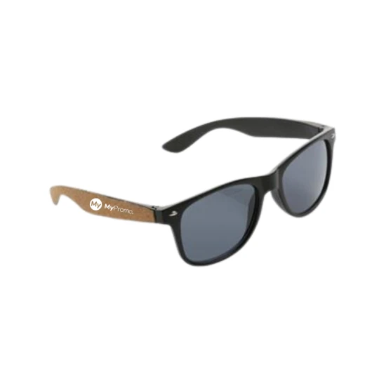 Zonnebril gemaakt met GRS-gecertificeerd gerecycled pc-frame. De gerecyclede inhoud van het frame is 100%. Totaal gerecycled materiaal: 68% op basis van het totale gewicht van het item. GRS-certificering zorgt voor een volledig gecertificeerde toeleveringsketen van de gerecyclede materialen. Met FSC®-kurkdetail op de buitenste pootjes. De lenzen zijn van smokey acryl en voldoen aan EN ISO 12312-1, UV 400 en CAT 3. Verpakt in een FSC® kraft verpakking